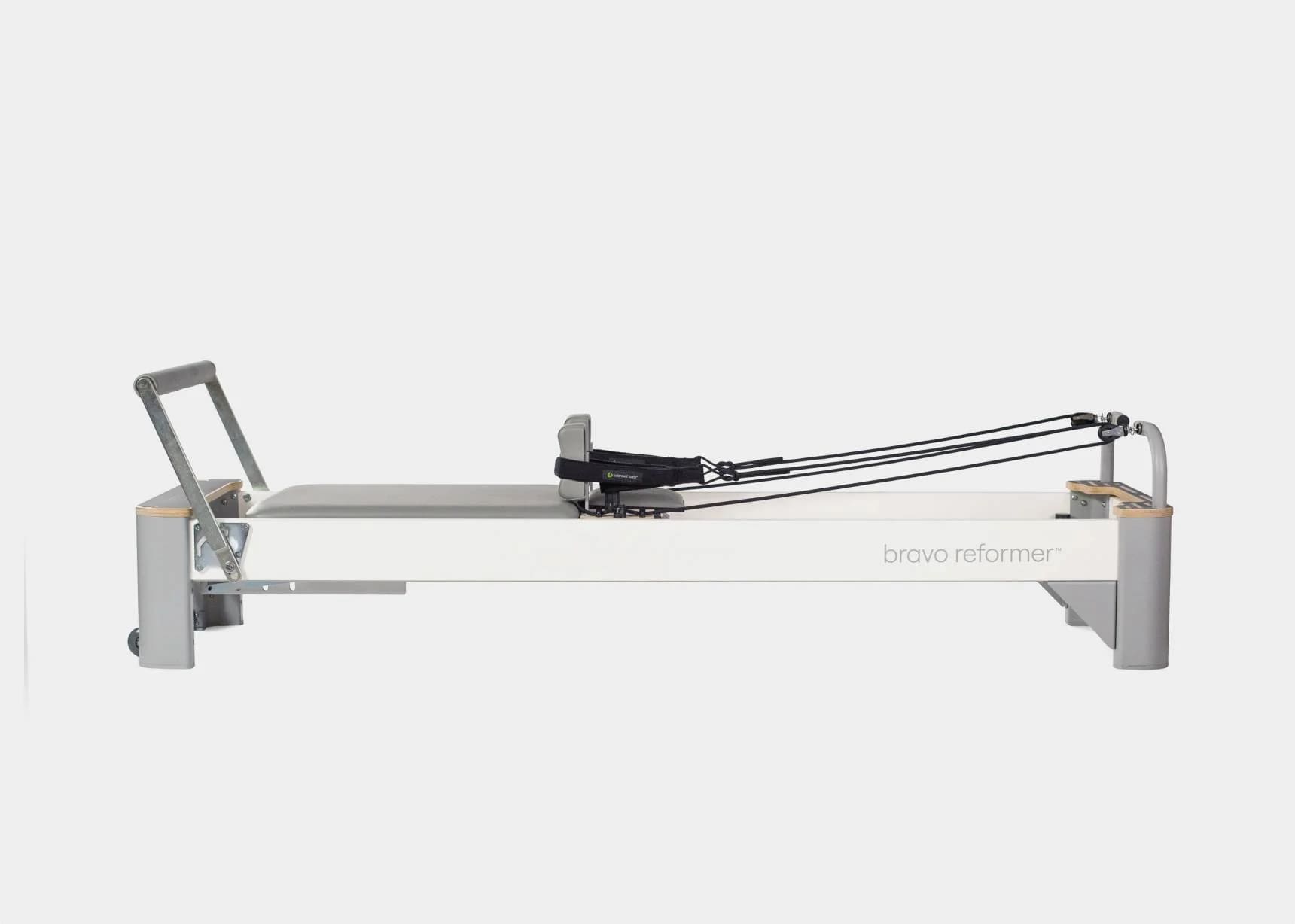Αυτό το μοναδικό, εντυπωσιακό Reformer προσφέρει κορυφαία ποιότητα, απόδοση και βιωσιμότητα. Με 5 Signature Springs™, μια μπάρα ποδιών 4 θέσεων και σύστημα SoftTouch® Double Padded Loops and Rope, το νέο Bravo Reformer είναι ιδανικό για χρήση στο στούντιο και στο σπίτι.