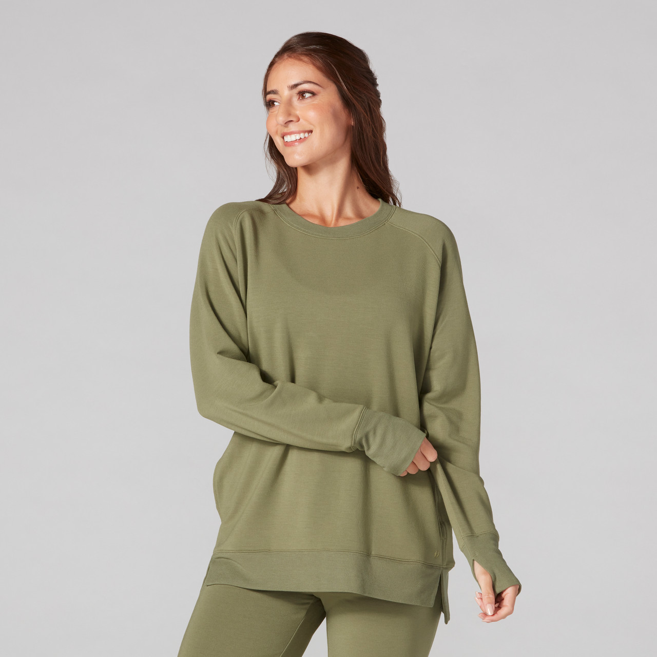 Με τελείωμα που κατεβαίνει στην ουρά, μακριά μανίκια με βολικές τρύπες για τους αντίχειρες και κομψές κρυφές πλαϊνές τσέπες, αυτό το φούτερ προσφέρει περισσότερα από όσα βλέπει το μάτι. Είναι επίσης κατασκευασμένο από μαλακό ύφασμα Modal, οπότε μόλις το φορέσετε, ίσως να μην θέλετε να το βγάλετε.