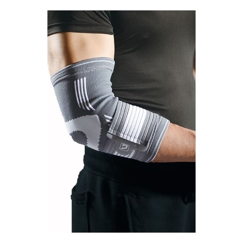 Ελαστική, αναπνεύσιμη και απορροφητική υποστήριξη αγκώνα με εξαιρετικά ρυθμιζόμενο ελαστικό επίδεσμο. Παρέχει το κατάλληλο επίπεδο σταθεροποίησης και υποστήριξης για να διατηρεί τον πονεμένο αγκώνα ζεστό και ασφαλή, ώστε να αισθάνεστε καλύτερα και πιο άνετα.