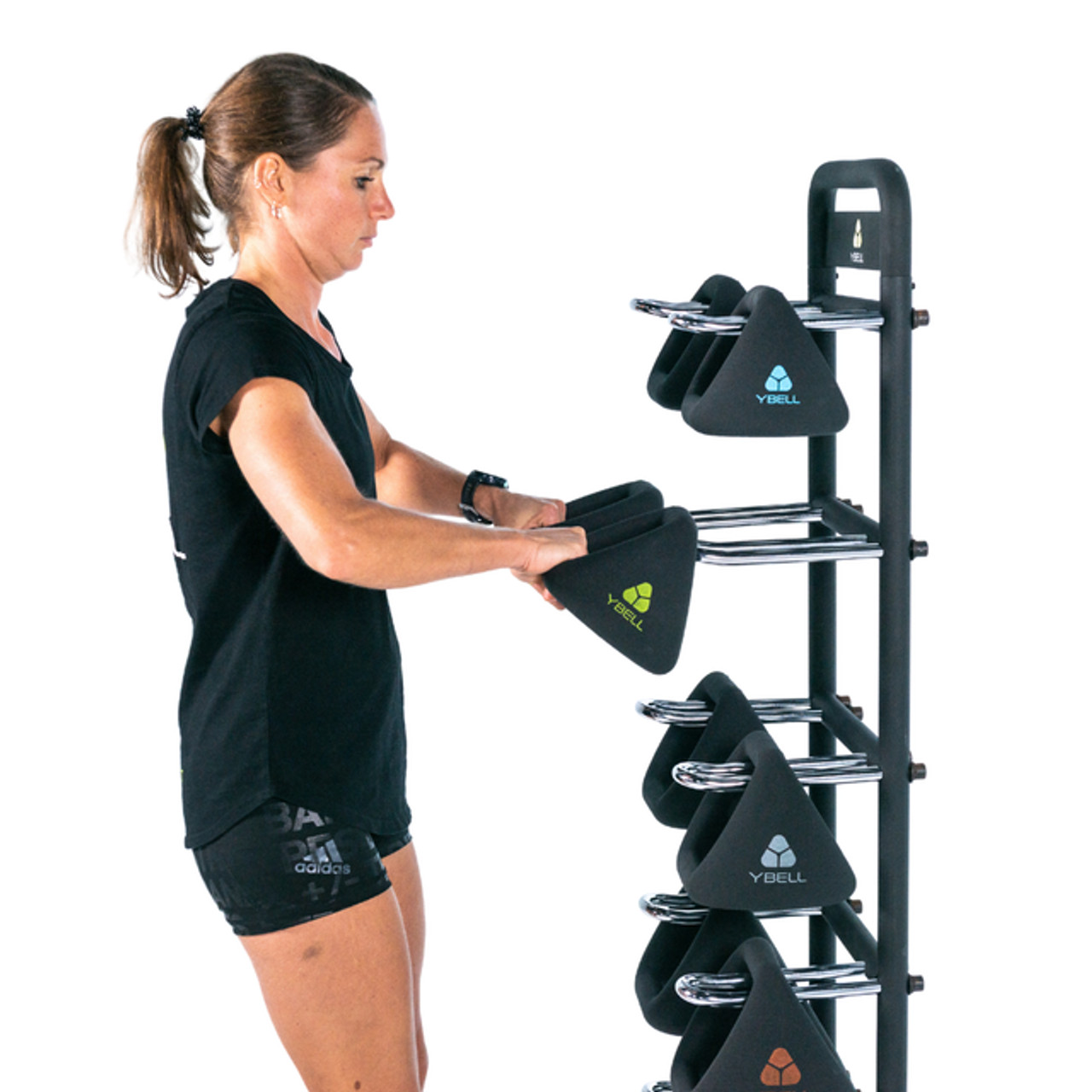 Η σχάρα μας συναρμολογείται εύκολα και χωράει έως και 10 YBell οποιουδήποτε μεγέθους, καθιστώντας την μια συμπαγή λύση εξοικονόμησης χώρου για κάθε γυμναστήριο, στούντιο ή σπίτι.