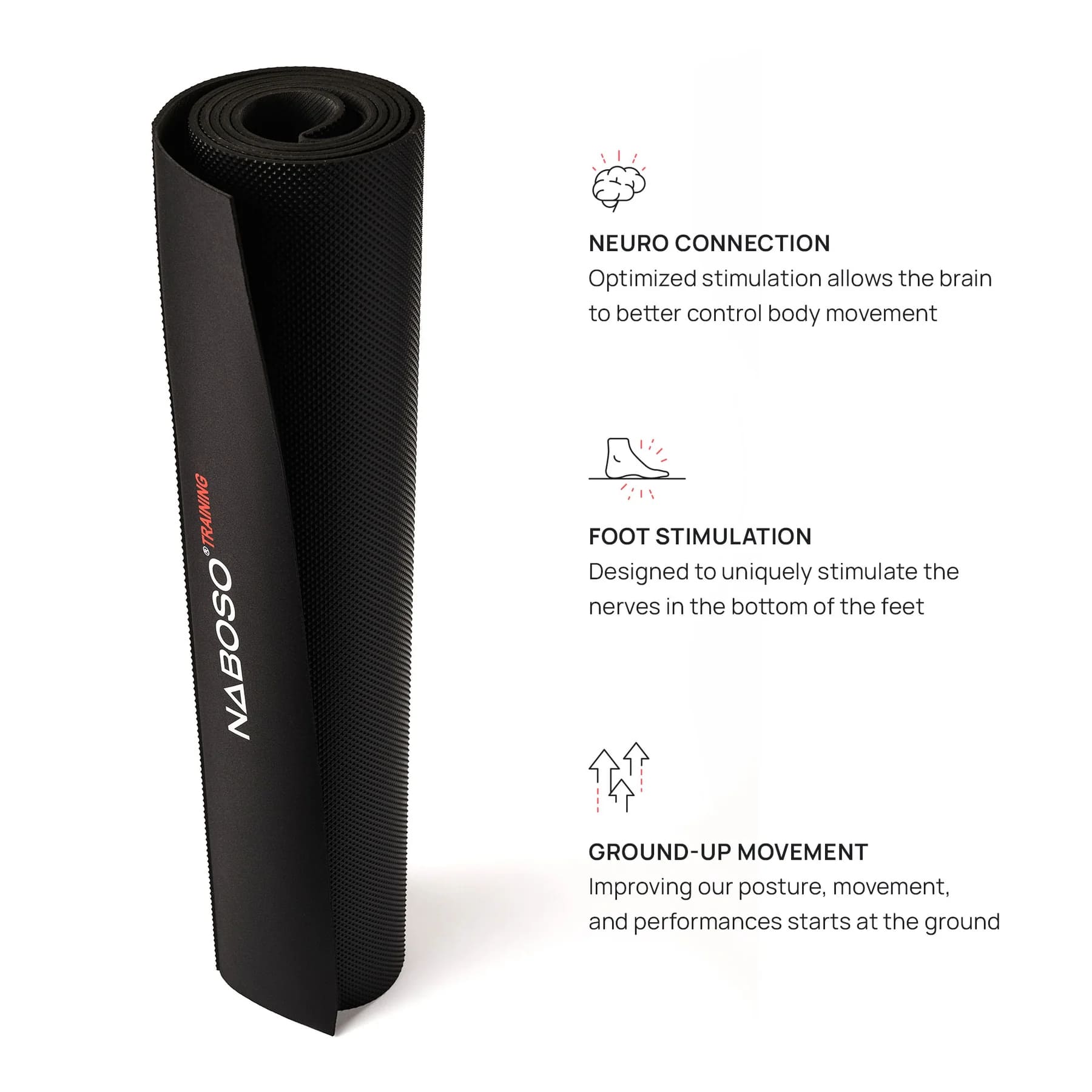 Ο μοναδικός, σχεδιασμός υφής που χρησιμοποιείται στο στρώμα προπόνησης Naboso έχει σχεδιαστεί για να διεγείρει μοναδικά τα νεύρα στο κάτω μέρος των ποδιών όταν σηκώνετε βάρη ή κάνετε ασκήσεις αποκατάστασης.