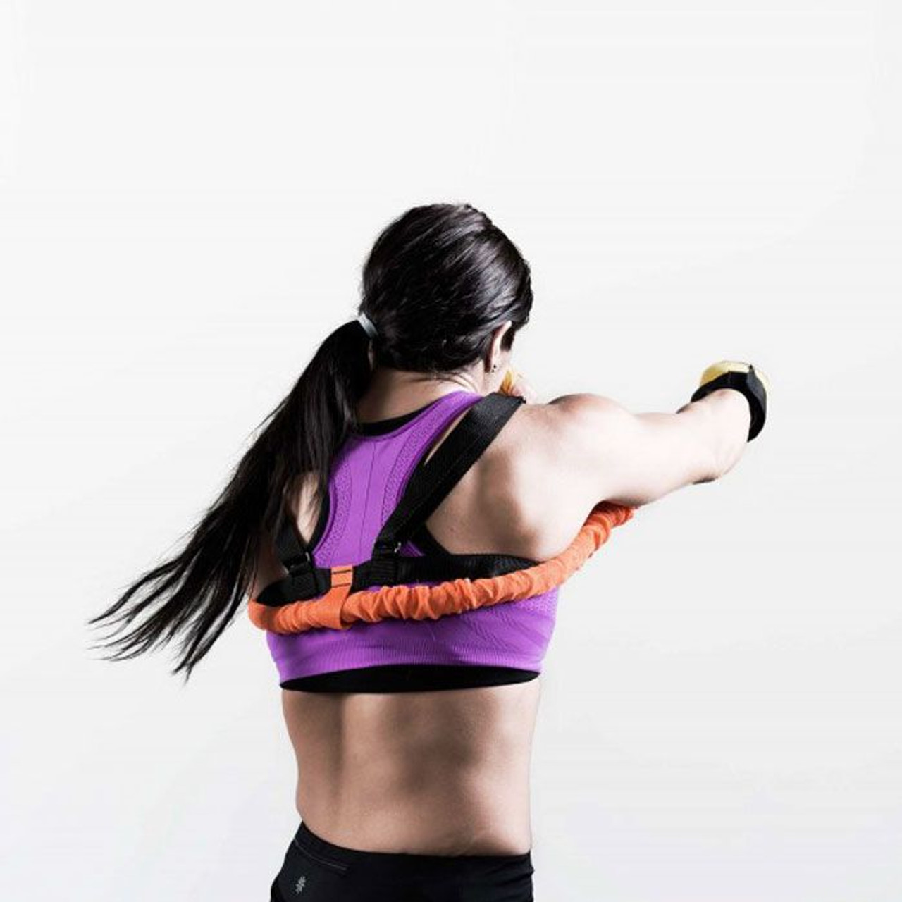 Με το Stroops Cobra Pro εκπαιδεύετε τους μυς των βραχιόνων με επιπλέον αντίσταση. Ο σωλήνας Slastix πηγαίνει κάτω από τις μασχάλες πάνω από την πλάτη σας και είναι προσαρτημένος στις ζώνες που ασφαλίζονται στους καρπούς σας με Velcro. Η ζώνη ώμου σας διασφαλίζει ότι όλα παραμένουν στη θέση τους και σας παρέχουν επιπλέον υποστήριξη.