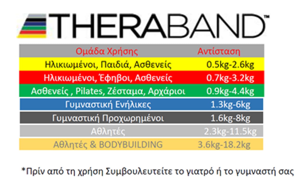 Τα αυθεντικά Λάστιχα Γυμναστικής THERABAND της Αμερικάνικης εταιρίας Thera-Band, είναι προϊόντα που χρησιμοποιούνται από γυμναστές και φυσικοθεραπευτές παγκοσμίως από το 1975, καθώς έχουν απεριόριστες δυνατότητες χρήσεως ενώ παράλληλα μεταφέρονται εύκολα παντού και πάντα καθώς είναι ελαφριά και μικρά.